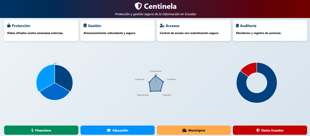 Gracias a Centinela, cumplimos con la Ley de Protección de Datos de Ecuador de manera eficiente, transformando un desafío legal en una ventaja operativa para nuestros sistemas: Financiero, Educación, Municipios